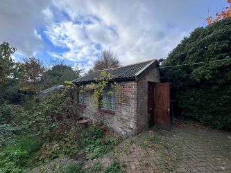 A sizeable outbuilding sits within the grounds, offering scope for various uses such as a home office, studio, workshop, or additional storage.