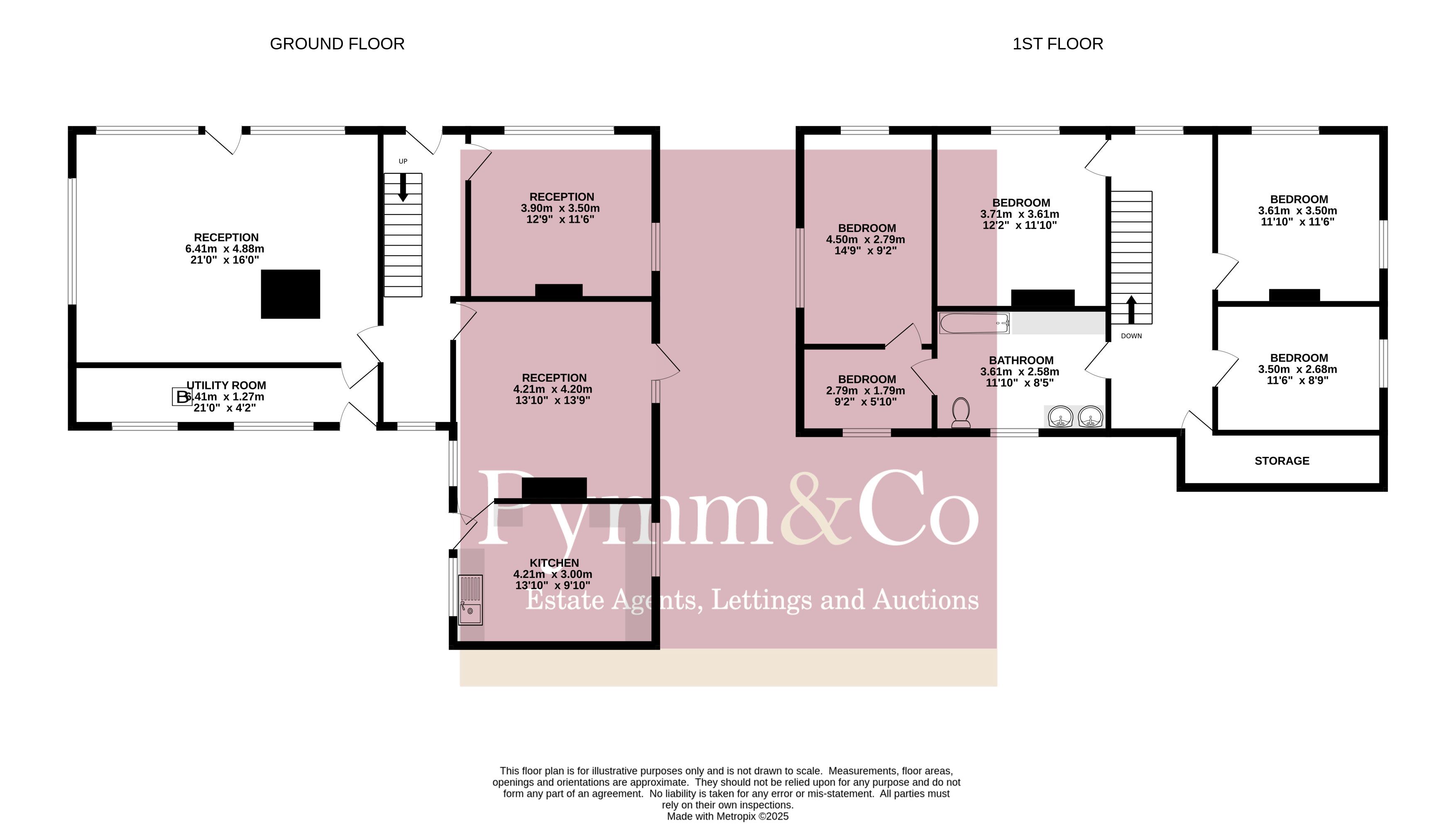 This impressive home offers generous proportions throughout, with accommodation extending across two floors. The ground floor features three reception rooms, providing flexible living space for modern family life. These rooms can be adapted to suit a variety of needs, whether for entertaining, home working, or creating a cosy retreat. One of rich offers access directly to the garden.
