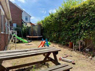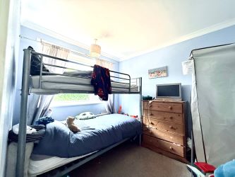 While internal inspection is recommended to fully appreciate the scale of the property, the accommodation is arranged over two levels in the popular chalet-bungalow style. The ground floor comprises a welcoming entrance hall, a spacious lounge, a fitted kitchen with scope for modernisation, and two generously sized bedrooms. Upstairs, the first floor provides a further two bedrooms, making it an ideal family home or shared rental property.
