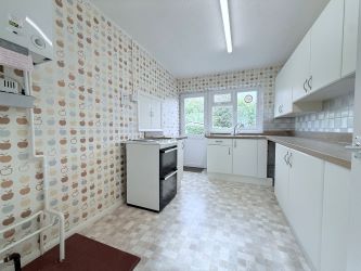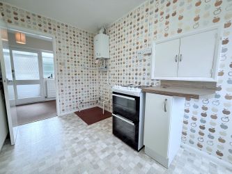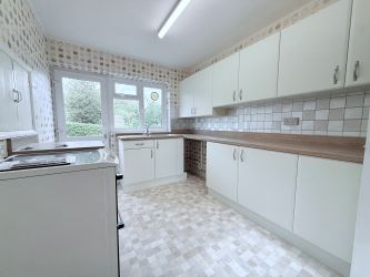 Accommodation is arranged across a comfortable single level, offering both practicality and versatility. The entrance hall leads through to a spacious sitting room, a bright and welcoming space with a large window overlooking the front and rear gardens. The kitchen is fitted with a range of units and provides access to the rear garden. There are three bedrooms, offering flexibility for family living, a guest room, or a home office, along with a family bathroom.