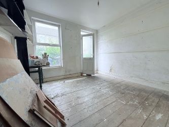 The accommodation is typical of the style, comprising an entrance leading into a spacious open-plan lounge, through to a dining area, then a kitchen to the rear, and a ground floor bathroom. Upstairs, you’ll find three bedrooms, including two generous doubles and a single – all full of potential. The rear garden offers a blank canvas – currently overgrown, but with ample room to design an attractive outdoor space.